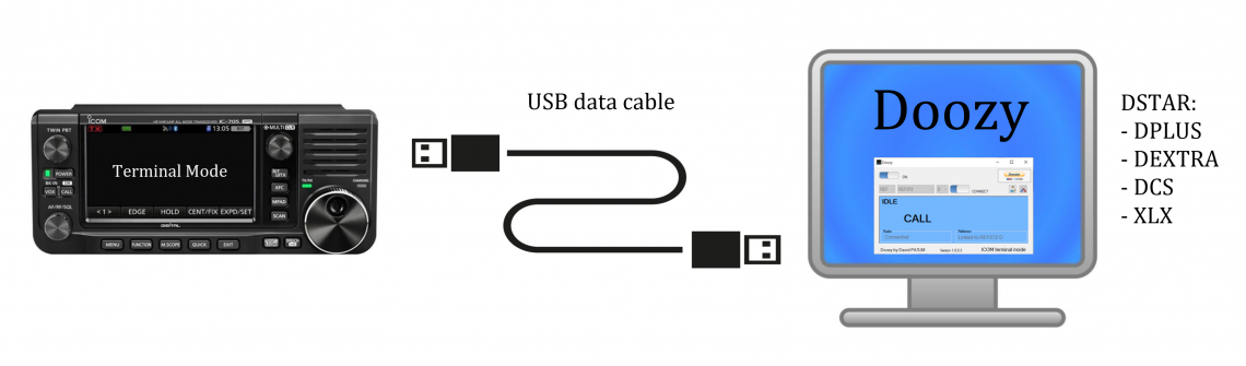doozyはICOM製D-STARトランシーバー用のターミナルモードソフトウェア。WindowsPCから文京430に出られます。パソコンとデータポートのあるD-STAR無線機が必要。PCはインターネットにつながっていれば特に制限がないみたいです。例えば、ポート40000を開放する必要はありません。